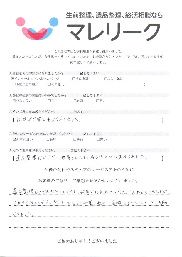お客様のご意見、ご感想をお聞かせいただけますか。遺品整理だけでも初めてのことで、供養や形見分けの方法さえわかりませんでした。