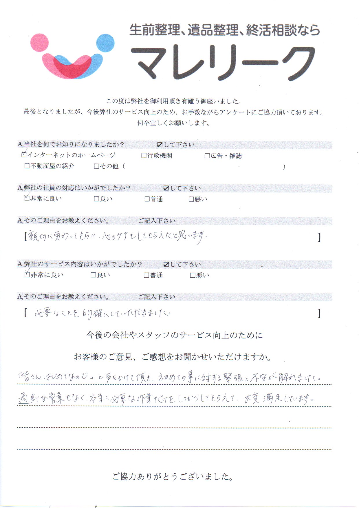 | 利用したサービス | :遺品整理,遺品買取,不用品回収 |